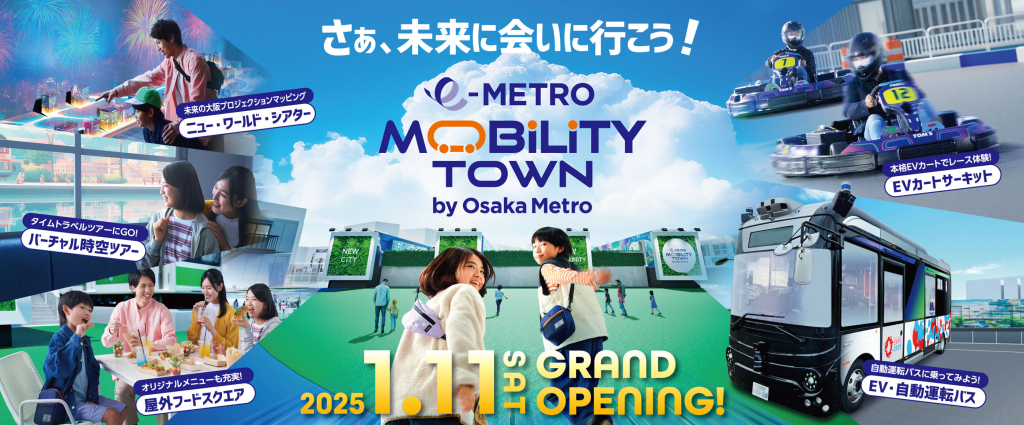e METRO MOBILITY TOWN is a temporary experiential theme park running from January to October 2025. Designed by Osaka Metro, it offers futuristic and interactive attractions centered on urban living and transportation.